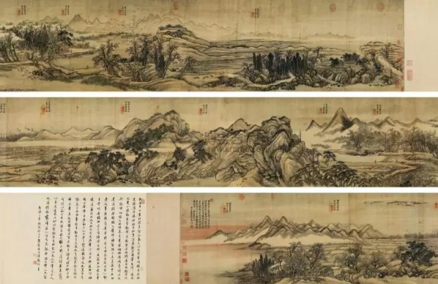 《雁荡图》是乾隆皇帝钦点状元画家钱维城的代表作,也是钱维城一生书画创作中最著名的长卷之一,列入《石渠宝笈》。此卷为纸本青绿设色手卷,长731.2厘米,乾隆八玺齐全,并有嘉庆、宣统的鉴藏印。钱维城的山水画,典雅端庄,浑厚华滋,体现出浓厚的书卷气。