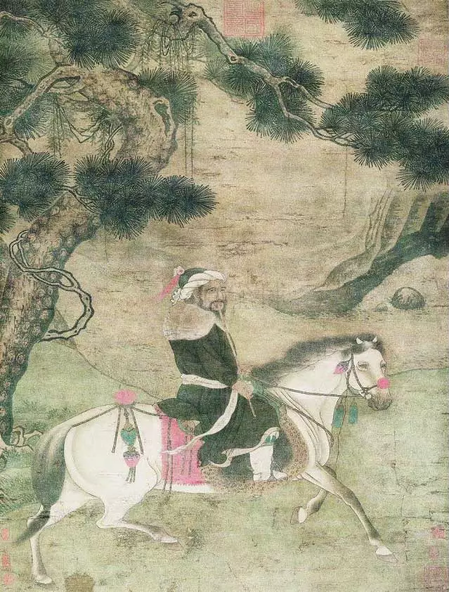 要说此幅画为何上亿,仅是宋画足矣,此幅《蕃骑弄箫图》,系设色绢本,装裱方式为单色全绫裱立轴。图绘一蕃人骑马吹箫过漠地古松下,于画面左侧中部,题有楷书“陈皋制”三字,墨色沉着,深入肌理,与画面用墨统一,显系原画本款。关于陈皋,史书著录颇少,宋人邓椿《画继》卷七载:“陈皋,漠州人,长于蕃马,颇尽胡态,张勘(戡)甥也”,仅十七字。由此不难推断,陈皋为宋代人无疑。