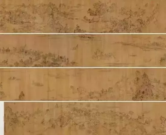 王翚(huī)此图,写江南景色。起首平林清旷,坡陀相续,浅沙远水,天遥日暮。坡岸之间,蹊径蜿蜒,山势渐起,村舍列列映带于乔木茂树之间。小道之上,人骑往来,碧溪尽头,归鸦翔集。晚霭生处,岗岭遂峻,叠壑层岩,逶迤有磅礴之势。其间乔松积翠,山寺藏幽,其下芰荷送香,平畴交远,大江与青山,远而不见尽头矣。其末以落照结,故意境益见祥和。