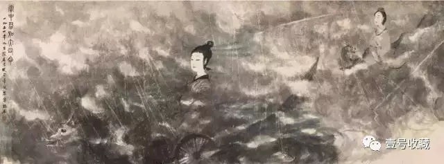 这件由傅抱石于1954年根据郭沫若《屈原赋今译》的内容,以屈原《九歌》中云中君与大司命两位神话人物为题的创作不仅是傅抱石一生中最为重要的人物画,更在近代美术史中有着极其重要的位置。