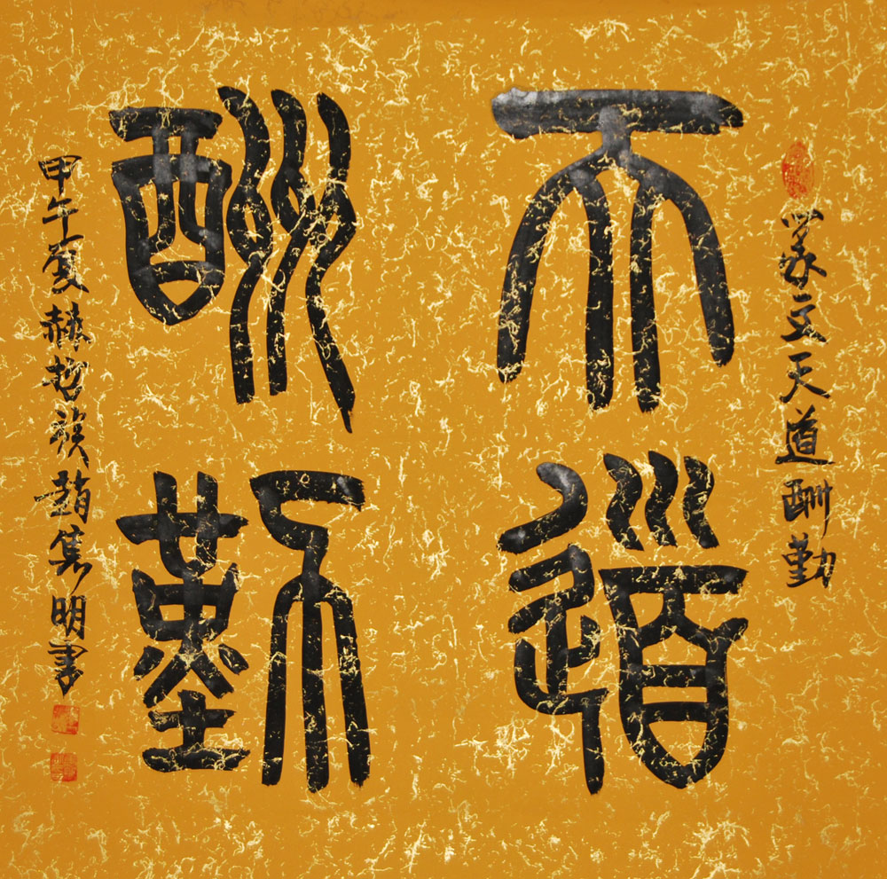 2002年4月14日中央电视台3台《真情无限》栏目拍卖名人书画,《赠郭颂》篆书作品拍卖一万五千元。